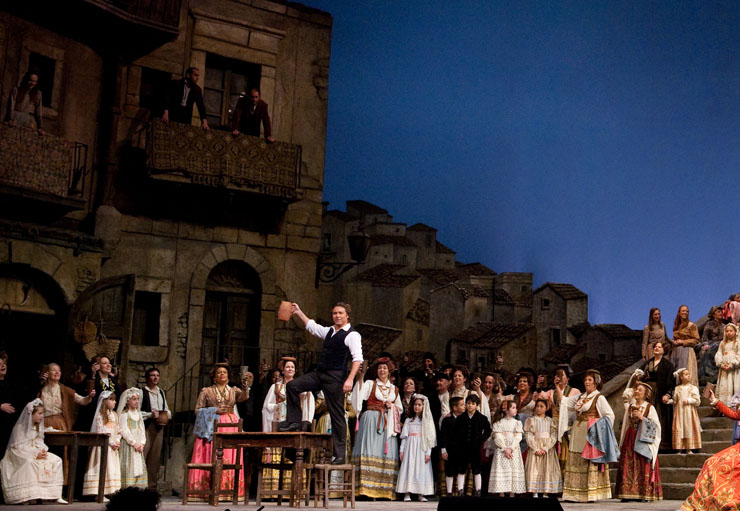 Turiddu, a parasztlegény dala hallatszik a távolból: szerelméről, Loláról énekel.