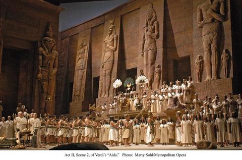 Phtá templomában a papok és papnők isteneket engesztelő ceremóniája zajlik. Egyiptom győzelméért imádkoznak és azért, hogy az istenek védjék meg harcosaikat. Ramfis főpap átnyújtja Radamesnek a megszentelt hadvezéri kardot.