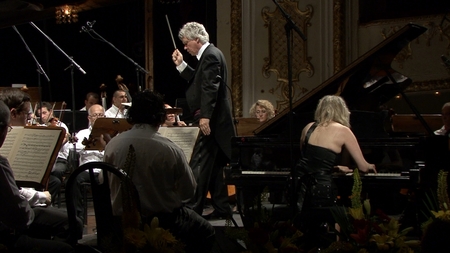 Képek a Nemzeti Filharmonikus Zenekar és Énekkar előadásáról, amelyen Kocsis Zoltán vezényletével hangzott el Rahmanyinov: Dalok és A harangok című műve, valamint Chopin: f-moll zongoraversenye Hauser Adrienne tolmácsolásában.