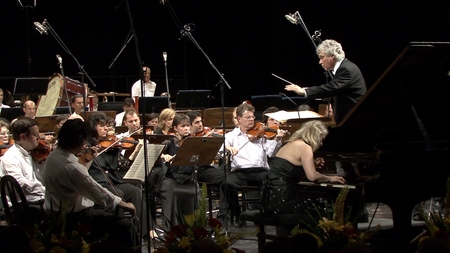 Képek a Nemzeti Filharmonikus Zenekar és Énekkar előadásáról, amelyen Kocsis Zoltán vezényletével hangzott el Rahmanyinov: Dalok és A harangok című műve, valamint Chopin: f-moll zongoraversenye Hauser Adrienne tolmácsolásában.
